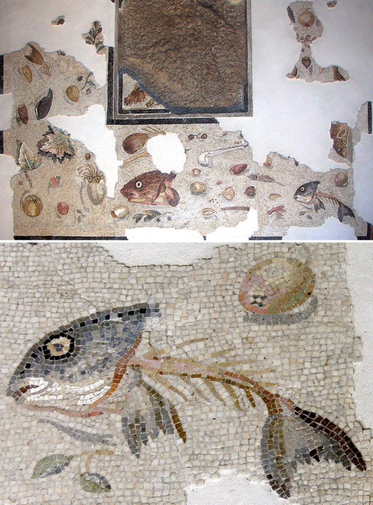 Per una rassegna completa sull’ Asaroton Oikos di Aquileia qui; quello di Vigna Lupi conservato ora ai Musei Vaticani si puo’ vedere in dettaglio qui.