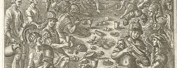 Enea e i suoi, dunque, si apprestano a mangiare ma non avendo suppellettili utilizzano come piatti focacce di frumento (di Cerere) schiacciate. Le appoggiano sul prato e le riempiono di frutte e verdure selvatiche.