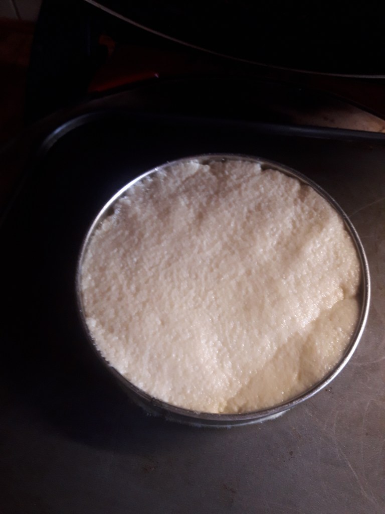 Prestando molta attenzione al tip del Senatore (Videto...) ho preferito usare una teglia piccola, e fare varie tortine invece che una grande, anche perche’ a me l’idea di servirla con il cucchiaio non piace.