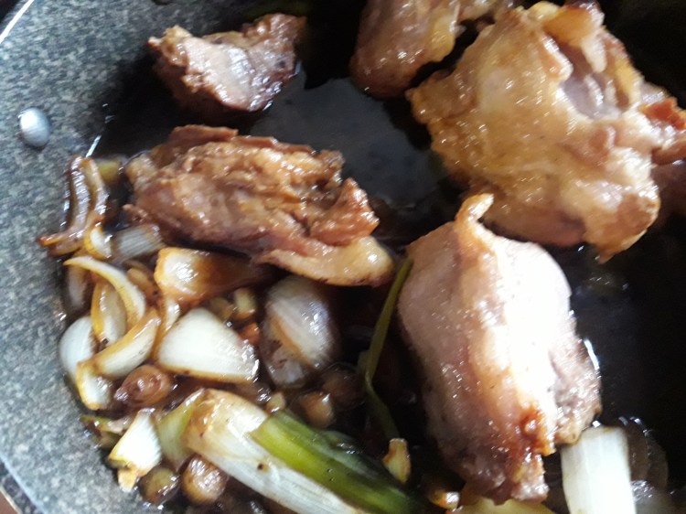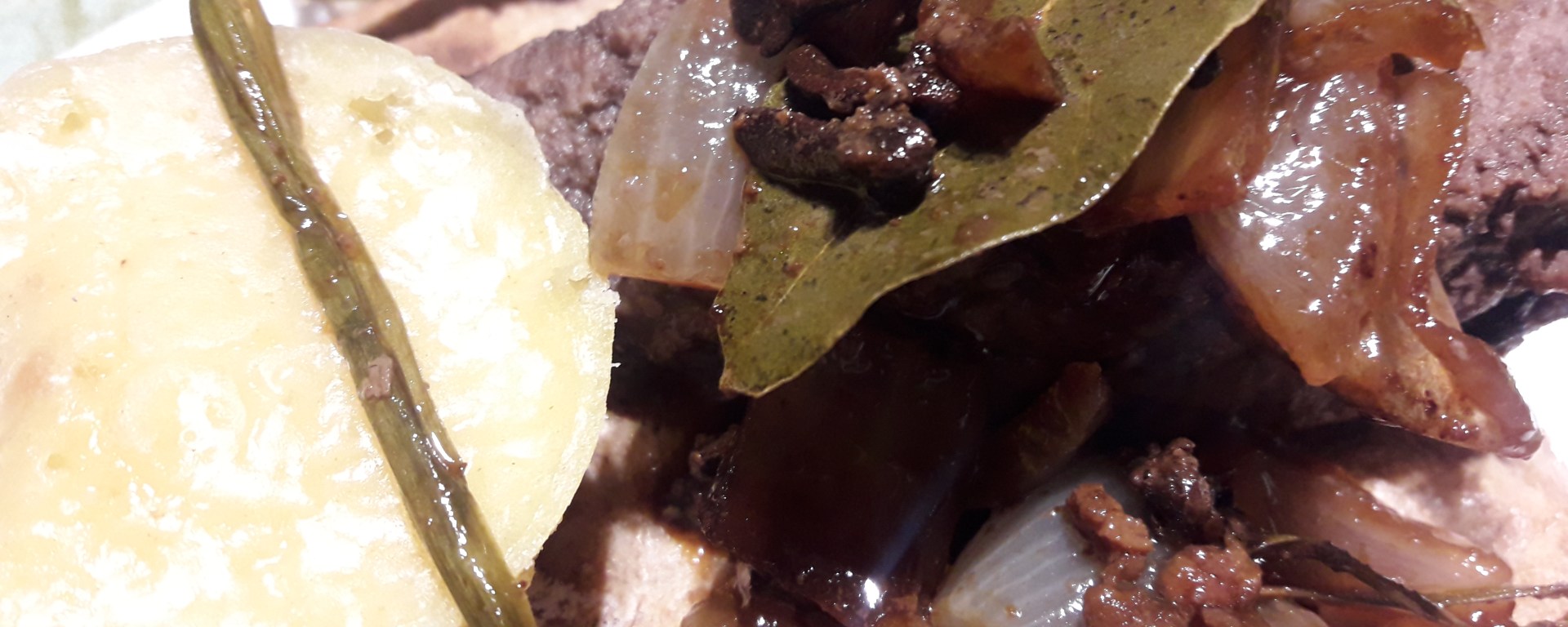 La ricetta originale si puo’ seguire alla lettera e, stranamente, non presenta grandi problemi né di traduzione né di logica. Devo ammettere che, in pranzi con pochi commensali, ho preferito evitare tanta varietá di carne e mi sono limitata a riprodurre lo spezzatino con uno o due tagli (coppa e costine). Certo un po’ di Luganica (salsiccia) é piú gustosa. Altro cambio che a volte introduco: invece di usare solo la cipolla secca nella salsa, faccio anche il soffritto iniziale di cipolla fresca. Non credo che il risultato finale cambi radicalmente, ma a me il profumo del soffritto di cipolla piace tanto.