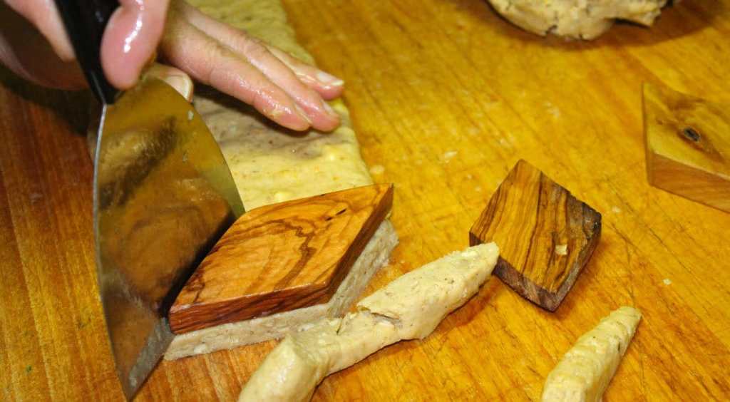 PREPARAZIONE: pestare le mandorle insieme a tutti gli aromi e al miele. Unire farina, sale lievito e mosto fino ad ottenere un composto consistente. Stendere l’impasto, tagliarlo a rombi. Cuocere 15 minuti. Servire freddi, ricoperti di miele o mosto.