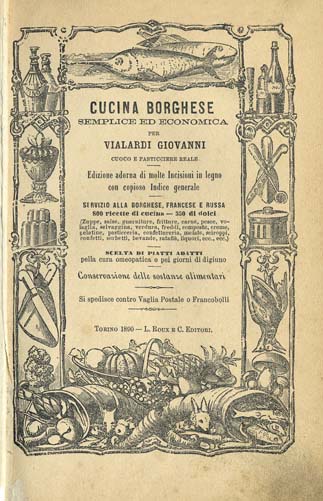 “Per fare la salsa verde, tritate tutto insieme colla lunetta, capperi spremuti dall’aceto, un’acciuga, poca cipolla e pochissimo aglio. Stiacciate [sic!] il composto colla lama di un coltello per renderlo fine e ponetelo in una salsiera. Aggiungete una buona dose di prezzemolo, tritato con qualche foglia di basilico, e sciogliete il tutto, con olio fine e agro di limone. Questa salsa si presta bene coi lessi di pollo o di pesce freddi, e colle uova sode o affogate. Mancando i capperi, possono servire i peperoni.”