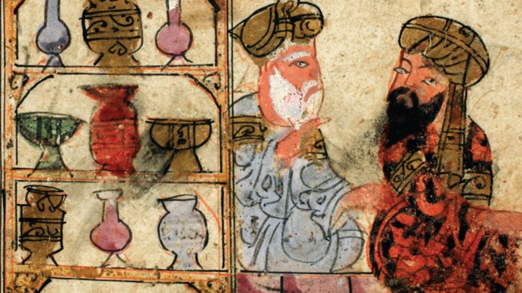 ‘Era consuetudine tra noi preparare questo piatto nei giardini di fiori e di frutte. Se lo volete fare in estate o in autunno, prendete salicornia, bietola, zucca allungata, melanzane piccole, “occhi” di finocchio, uva , le parti migliori di zucca tenera, polpa di cetriolo a coste e cetriolo liscio; tagliate a cubetti e sbollentate man mano in acqua salata; quindi scolate l’acqua. Prendete una pentola pulita e in essa versate un po ‘d’acqua e molto olio, cipolla pestata, aglio, pepe, semi di coriandolo e cumino; mettete a fuoco moderato e quando sarà caldo saltate le verdure sbollentate in precedenza. Quando è cotto, aggiungete il pane grattugiato o a cubetti , e spezza sopra quante più uova puoi, e spremi il succo di coriandolo tenero e di menta, e lascia sulla pietra rovente fino a che le uova si sono stabilizzate. Se lo fate in primavera, allora [usate] lattuga, finocchi, fave fresche sbucciate, spinaci, bietole, carote, coriandolo fresco e così via, fate cuocere il tutto e aggiungete le spezie già indicate, abbondante olio, formaggio, mollica di pane e uova.’