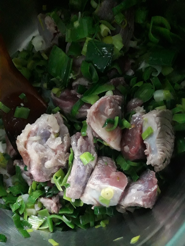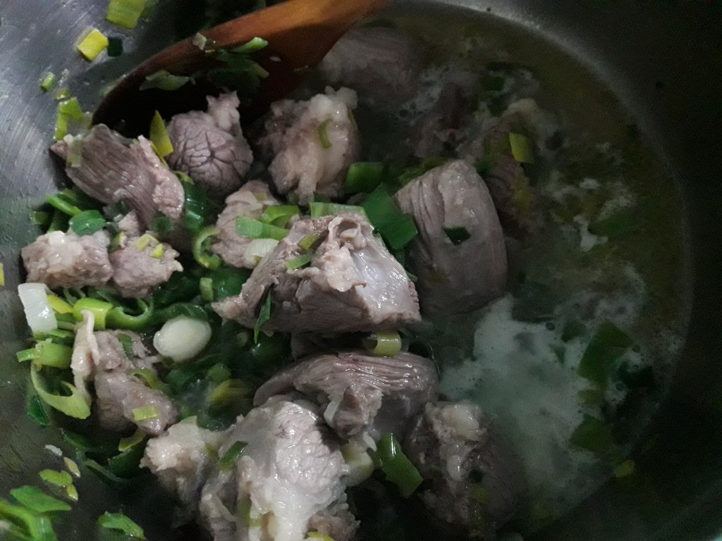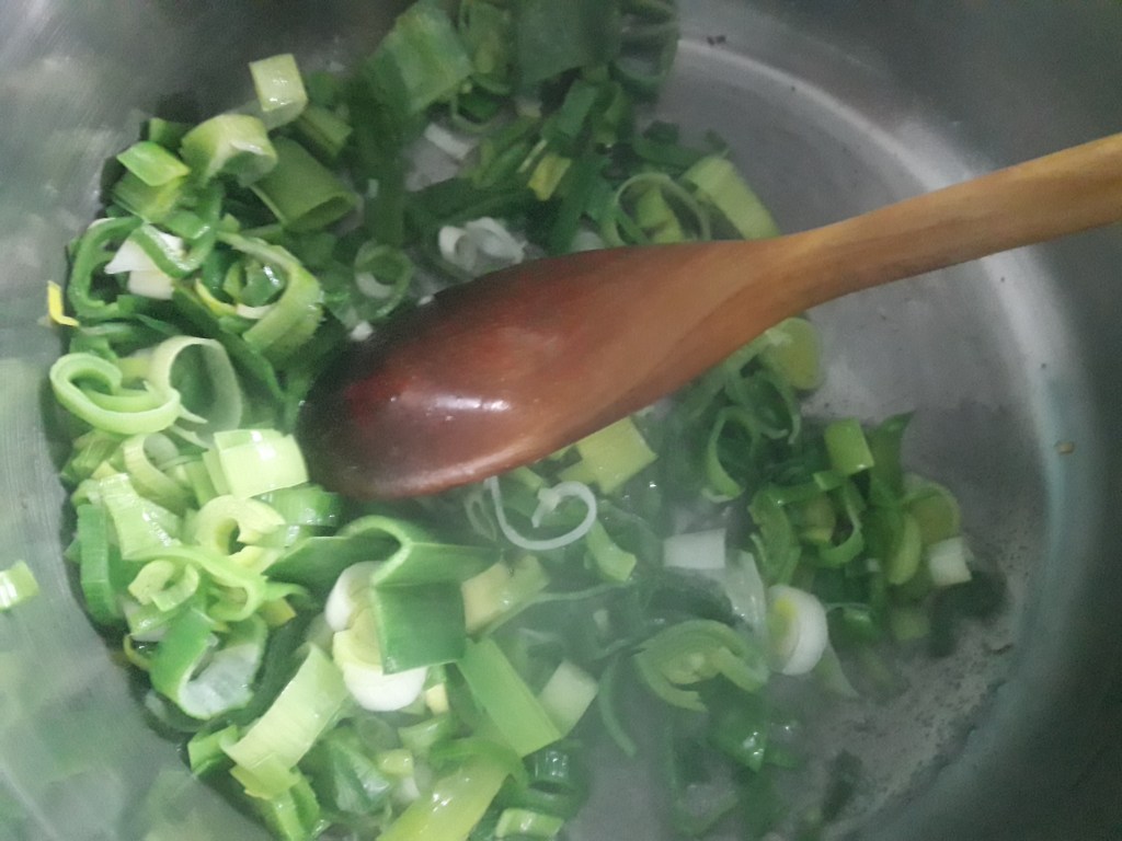 - In a large pan, I sauted 6 chopped leaks with celery.