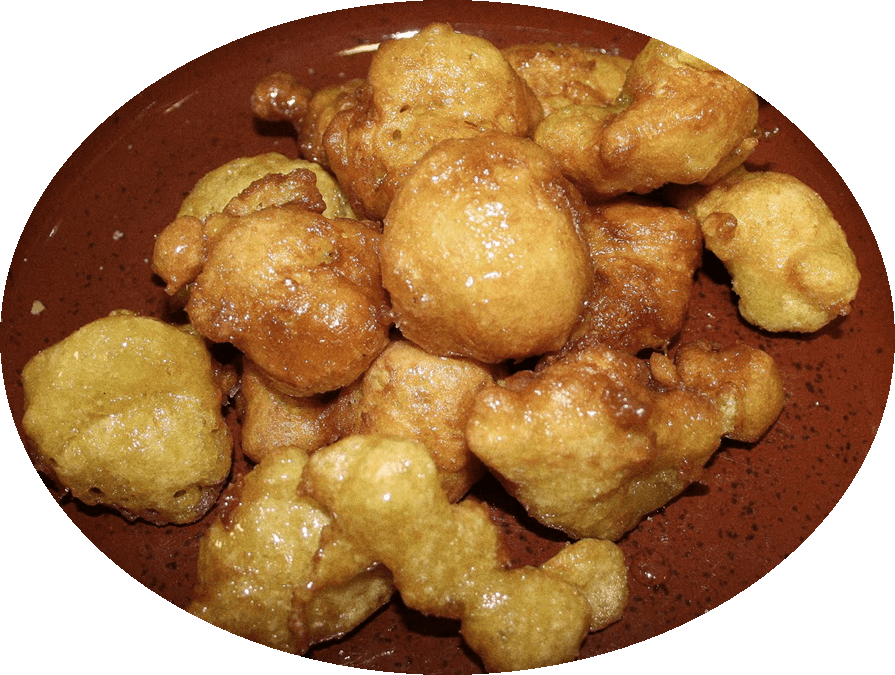 De crispelli, overo frittelle ubaldine. Togli farina netta biancha, e distempera con ova e fermento74 uno poco; mettivi çaffarano; e poi metti a cocere con lardo disfatto; da poi mettivi su çuccaro o mele; e mangia. ANONIMO MERIDIONALE (80)