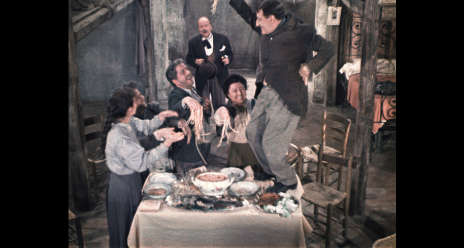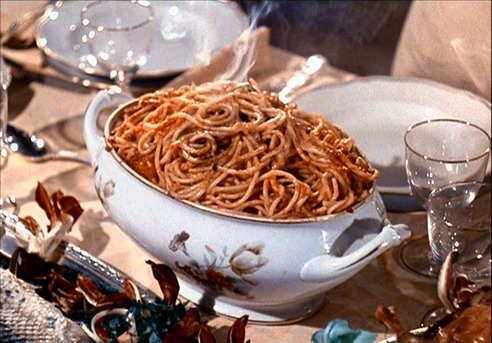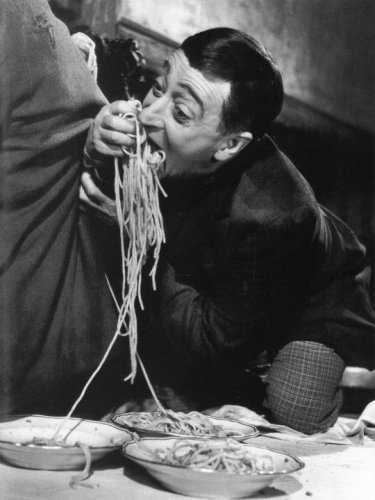 La scena che tutti ricordano, e’ quella di Felice, e i suoi, in piedi sul tavolo arraffando spaghetti a mani nude, per ingurgitarli velocemente prima che il sogno -se di sogno si tratta- sparisca.