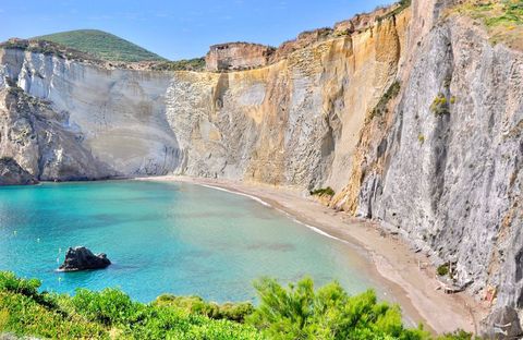 Inaspettatamente (ma neanche tanto) per un’ isola, nella cucina tradizionale ponzese a farla da padrone non sono tanto i pesci quanto le pietanze a base di legumi: zuppa di lenticchie, zuppa di cicerchie e “u cuniglie senza arrecchie” (fave lessate al pomodoro, da accompagnare con con cipolle e vino rosso). Non mancano le verdure, come la Cianfotta, e piatti piu’ recenti che includono anche il pesce. Da ricordare, tra i dolci, anche le zeppole ponzesi e il casatiello isolano, con caratteristiche peculiari rispetto agli equivalenti napoletani.