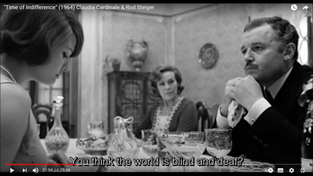 Indifferente, peró, fu anche la critica, a questo adattamento cinematografico del 1964. Supportato da un eccezionale cast di attori e tecnici e beneficiato dall’ alone dell’ oramai famoso Moravia, il film manca, in sostanza, d’anima e di tempismo. I personaggi, senza un preciso inquadramento storico, sembrano voler universalizzare il tema della meschinitá borghese, ma piu’ che “senza tempo” sembrano “fuori tempo”.