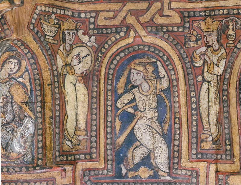 Cappella Palatina Palermo (XIII centrury), ceiling with dancers. See here more on the “musical paintings” of Cappella Palatina. Listen here Tammuriddara (a modern reproduction based on “Troparium de Catania” XII century)